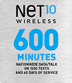 Compatible with most NET10 nationwide mobile phone plans; provides 600 minutes and text services; provides 60 access days of service
